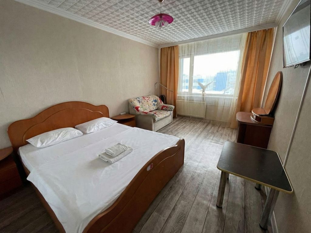 Однокомнатная квартира в самом центре Нового Уренгоя. Спальное место представляет собой кровать с матрацем 160х200 см, второе место - раскладной диван 140х180 см. В квартире присутствует журнальный столик, телевизор в комнате, холодильник, электрочайник, стиральная машина, гладильная доска, утюг, микроволновая печь, безлимитный интернет Wi-Fi. Есть вся необходимая посуда для приготовления пищи.