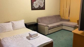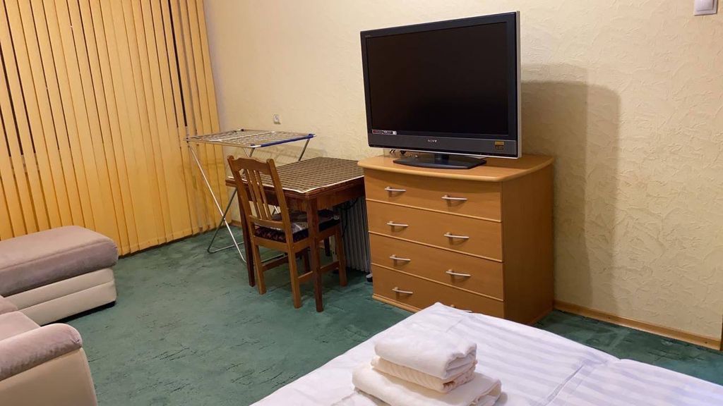 Однокомнатная квартира в самом центре Нового Уренгоя. Спальное место представляет собой кровать с матрацем 160х200 см, второе место - раскладной диван 160х200 см. В квартире присутствует журнальный столик, телевизор в комнате, холодильник, электрочайник, стиральная машина, гладильная доска, утюг, микроволновая печь, безлимитный интернет Wi-Fi. Есть вся необходимая посуда для приготовления пищи.