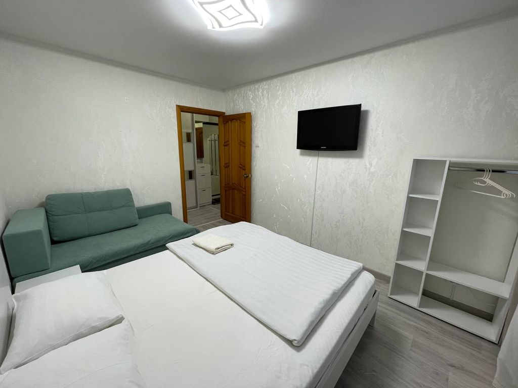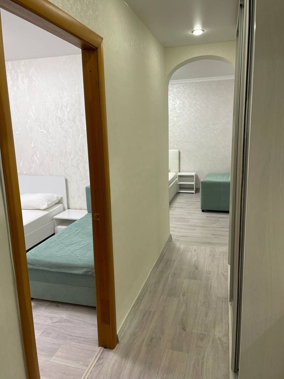 Двухкомнатная квартира в самом центре Нового Уренгоя. Спальные места представляет собой кровать с матрацем 160х200 см. в одной комнате, кровать с матрацем 160х200 см. в другой комнате. Журнальный столик, телевизор в каждой комнате, холодильник, электрочайник, микроволновая печь, стиральная машина, гладильная доска, утюг, безлимитный интернет Wi-Fi. Есть вся необходимая посуда для приготовления пищи.